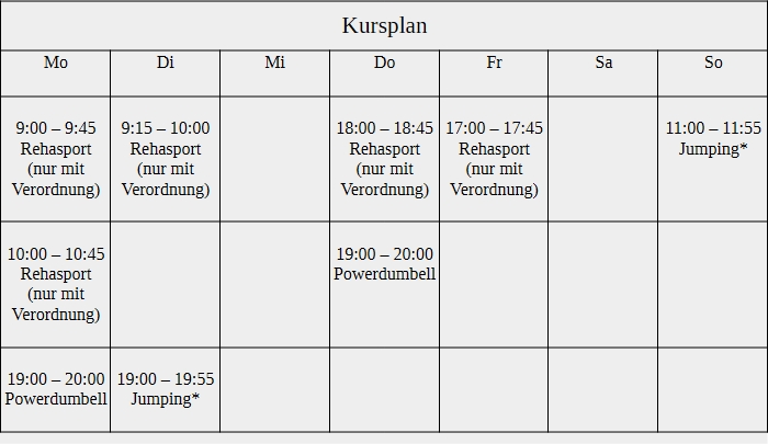 - Rehasport ( mit ärztlicher Verordnung )